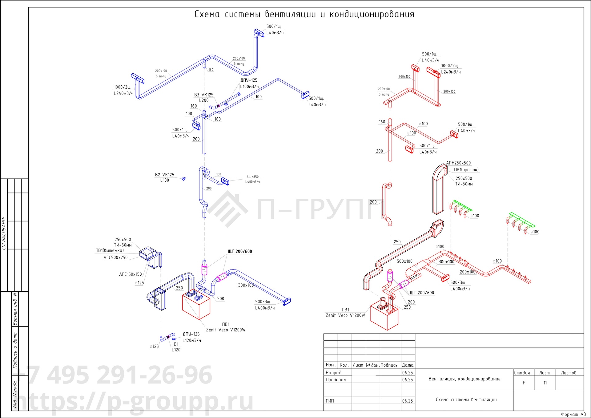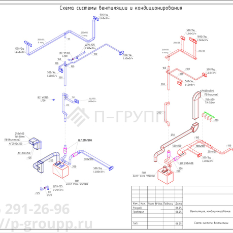 Планы вентиляции и кондиционирования, аксонометрические схемы, схемы размещения оборудования и трасс